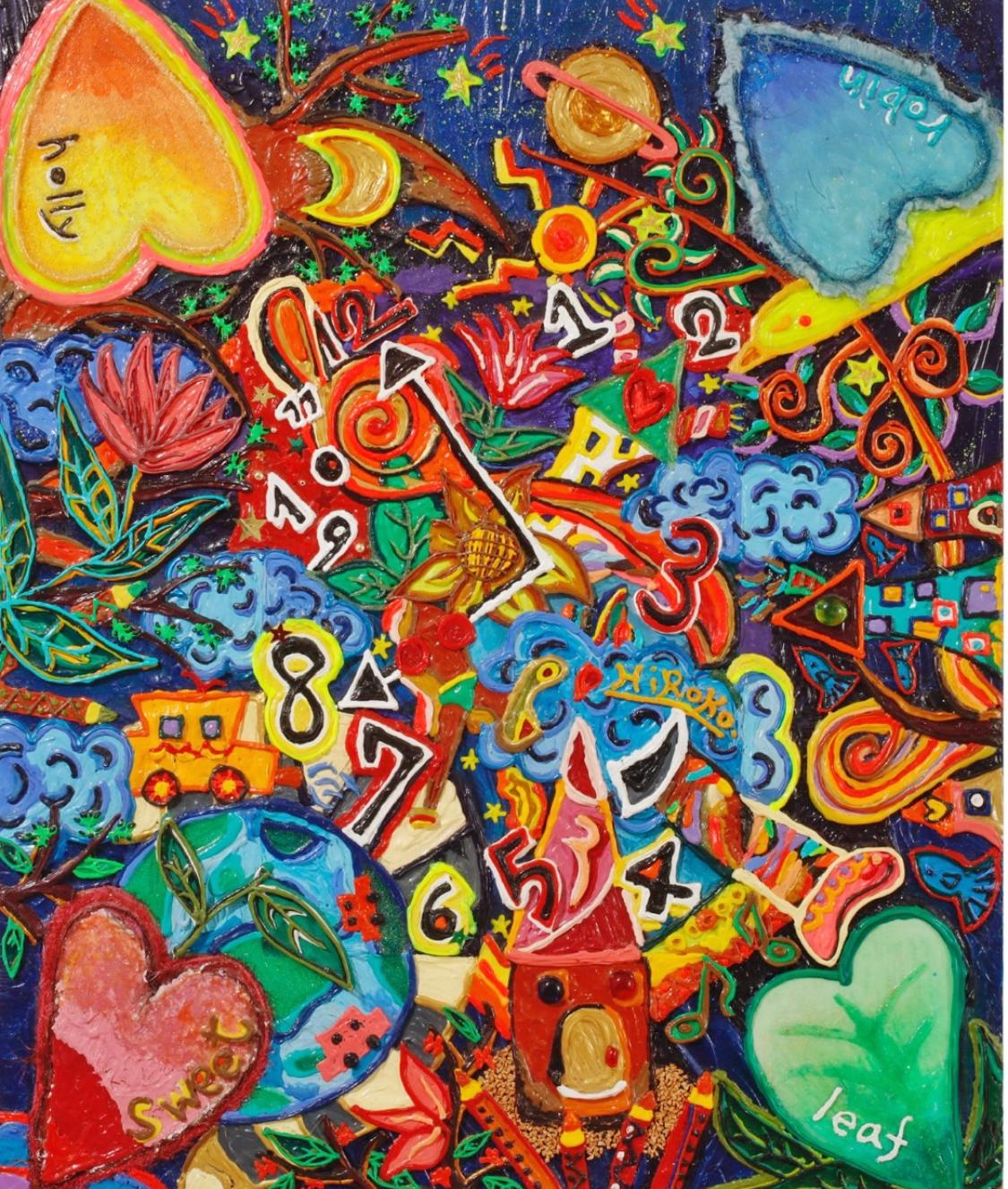 中央の大きな花を“心の灯り”に見立て、羽や葉、電車や町並みがその花に引き寄せられるよう構図を作りました。夜空の深さと色の鮮やかさのコントラストにより、生命の強さと優しさを共存させています。